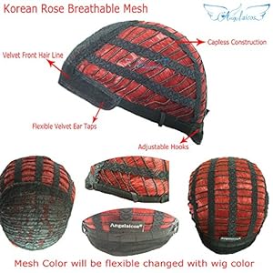 Angelaicos Advantage: Flexible original Design and suitable material. Dressing up to Comic con, Cosplay show, Halloween, Costume Party, Theme Activities. Soft Breathable Material: Durable heat resistant synthetic fiber which can be styled by curling iron or hair straightener. Natural looking and soft touch. Korean rose breathable mesh. Adjustable Size: Head circumference is about 22 inches. It has adjustable straps with hooks which can fix to a comfortable position for different head sizes people and layered stretchable hairnet.