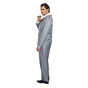 He might be a scary guy, but he is as romantic as can be. Dreamgirl’s Mr. Fright features a kooky double-breasted suit jacket with gray pinstripe print and rose boutonniere with attached spider. Includes matching pants and casket-print tie. (Cigar not included.) (Three-Piece Set). Complete your spooky family look with Dreamgirl’s Frightfully Beautiful and Friday.